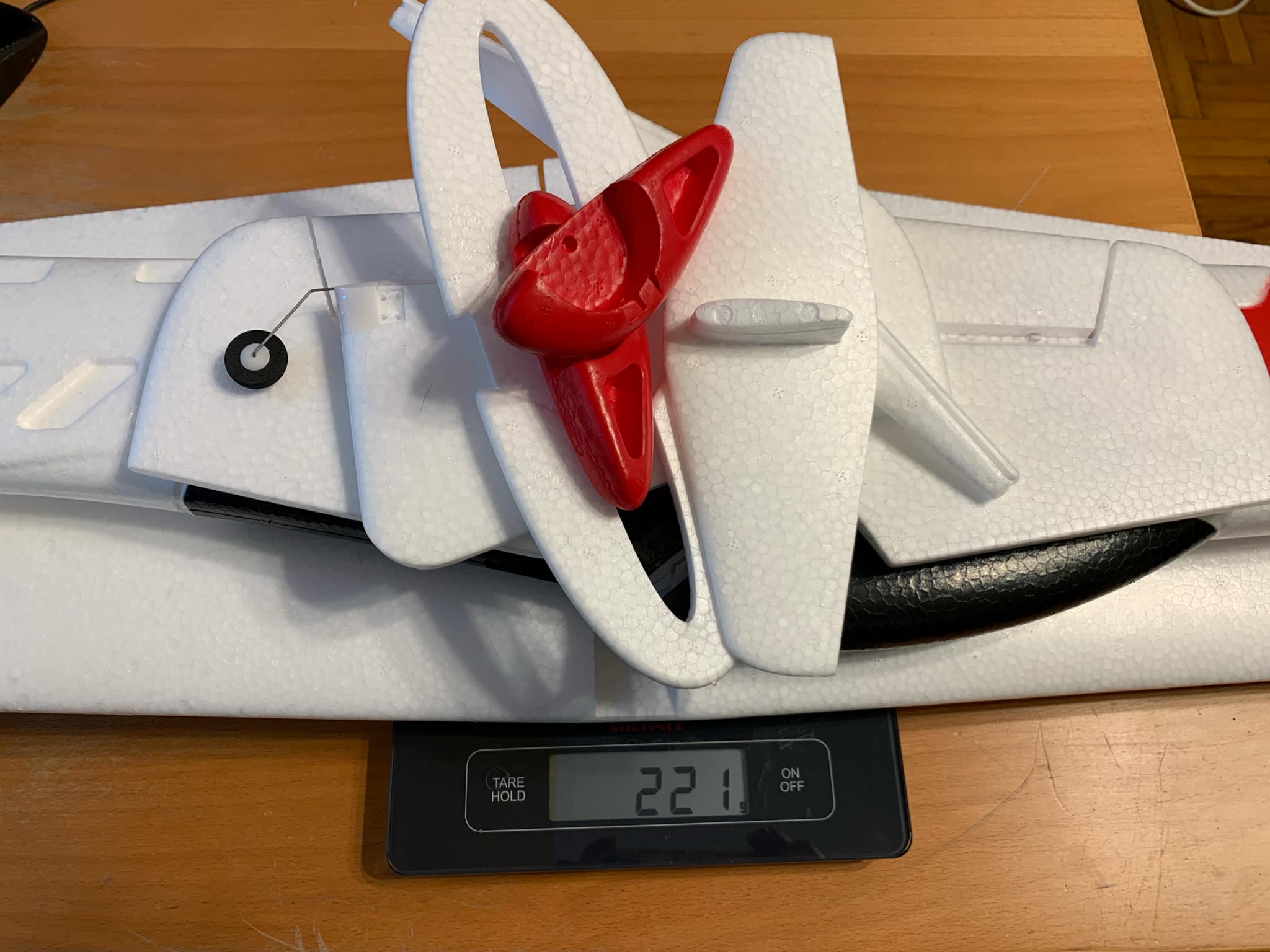 ![]() Lemértem a repülő súlyát, üresen 221gr. Egy kis technológiai információt kalapot emelhetek a gyártó előtt, mivel a főszárny a magassági a törzs minden karbon erősítésű. Ez benne van a 221gr ban! Nem is lehet kiszedni a karbon-t mivel gyártáskor kerül a szárny közepébe és a hab körbe veszi Ezen nem sokat lehet tunningolni, mert úgy jó ahogy van. Motor AM40 V2 22,3gr T8542 légcsavar 4,9gr ESC 16A 3D/4D 8,5gr BMS 306BB szervó 6,6 gr x 4 = 26,4gr R86 vevő 4,8gr Xenonpower 550mah/85C-170C/11,1V 63gr ------------------------------------------------- Összesen: 129,9gr Repcsi: 221gr --------------------- Végösszesen: 350,9gr Motor AM40 V2 22,3gr T8542 légcsavar 4,9gr ESC 16A 3D/4D 8,5gr BMS 306BB szervó 6,6 gr x 4 = 26,4gr R86 vevő 4,8gr Xenonpower 1100mah/85C-170C/11,1V 97gr -------------------------------------------------- Összesen: 163,9gr Repcsi: 221gr Végöszesen: 384,9gr 3D/4D tóló erő: 742gr ! Szerintem tudok vele majd 4D-t repülni! Jó a futómű még nincs benne, meg kell majd a vezetékeken még spórolni, hogy maradjon a futóműnek is súly! |